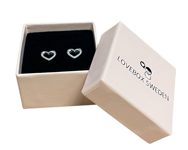 I boxen hittar du vackra silverörhängen med zirconiastenar, en ögonmask för avkoppling, en liten glasnalle och en röd tvålros – allt vackert placerat i en elegant ask med sidenband. Men det som gör denna gåva alldeles unik är den personliga glasburken där du kan lägga in ett meddelande till henne. Några få ord – kanske ett minne, ett löfte, ett "jag älskar dig" – kan göra större intryck än du tror.